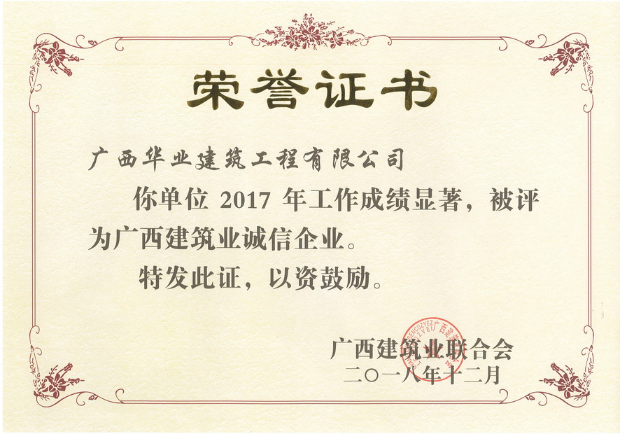 2019.12 2018年度广西建筑业质量管理优秀企业